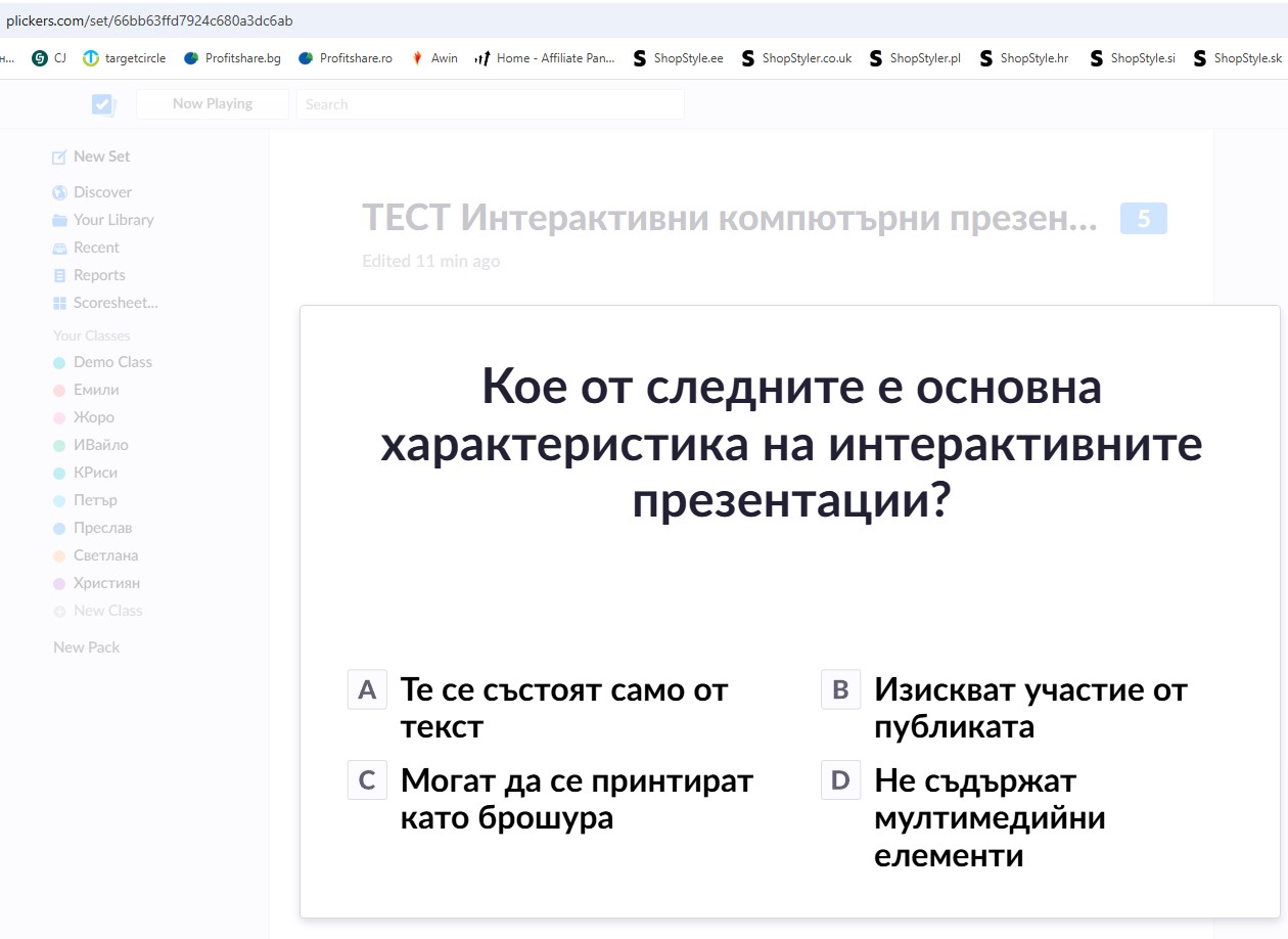 🔹 Въведени бяха съвременни дигитални инструменти – ZipGrade, Plickers, Edpuzzle, Microsoft Forms и други, които подпомагат по-обективното и ангажиращо оценяване на обучаемите. Интерактивните видео уроци за оценяване на постижения може да видите тук.